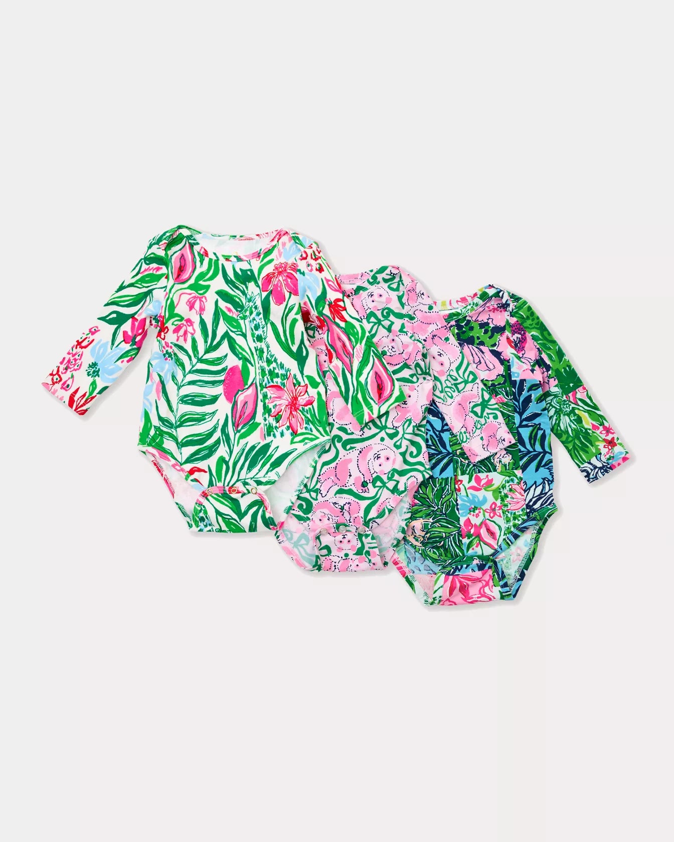 - Infant gift set featuring 3 long sleeve bodysuits with snap closures.