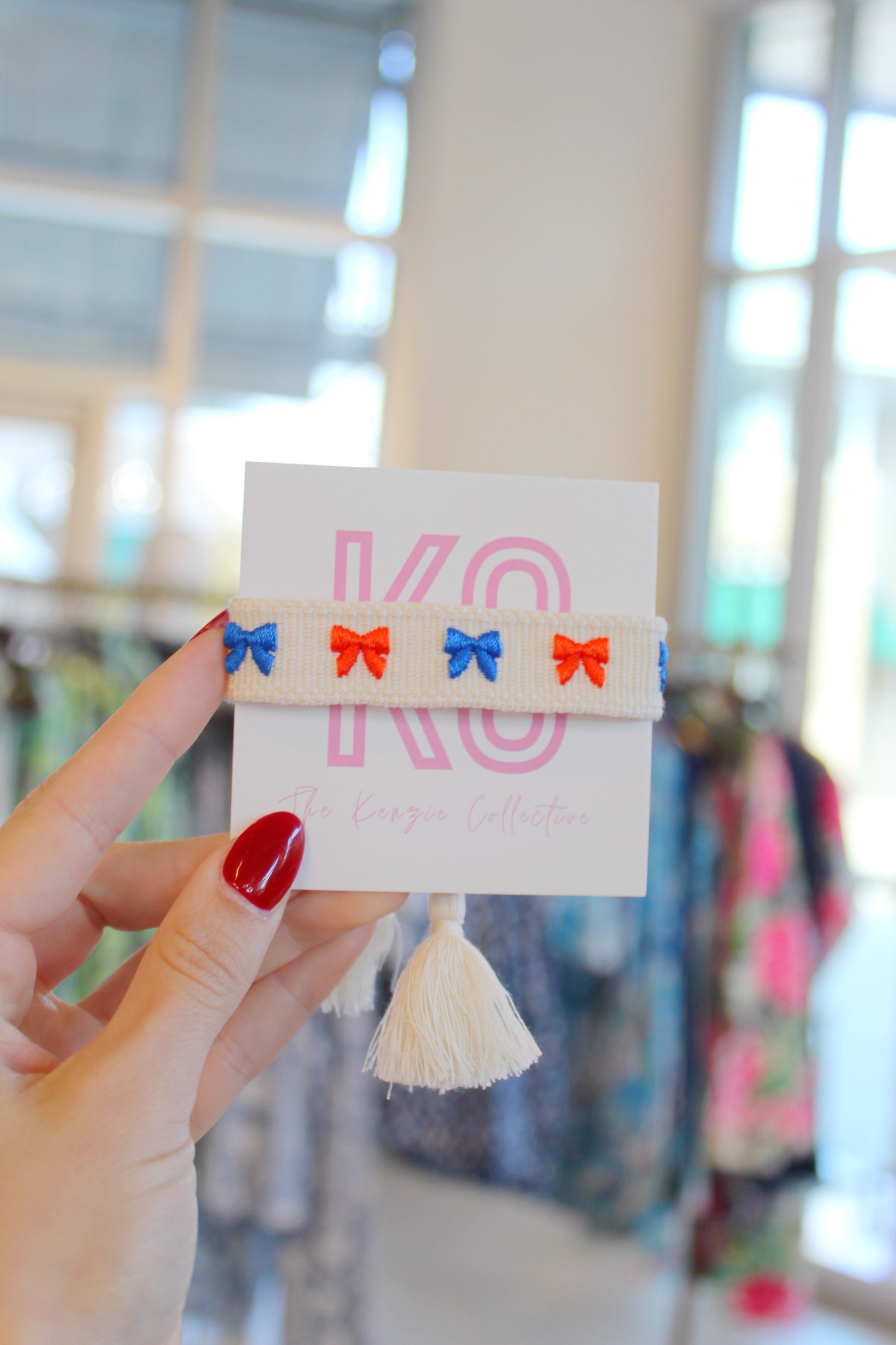 Signature Bracelet - Orange and Blue Bows with Football Charm